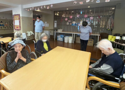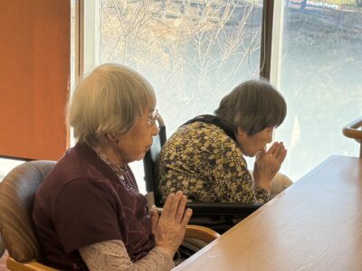 職員・入居者様の皆さまとともに、黙とうを捧げました。