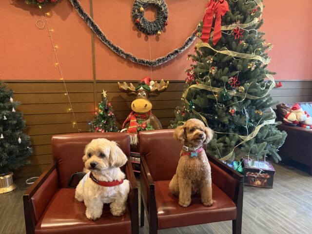 おだかの郷のセラピー犬見習いイチローとお友達のロック、今年最後のトリミングに行ってきました!とっても可愛くなりましたよ😍良い子のイチローとロックにもサンタさんが来ますように…