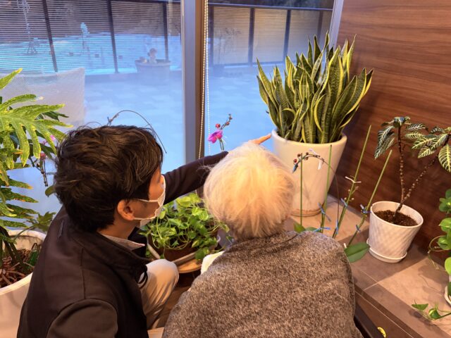 地域交流スペースに置いてある大きなサンスベリアの鉢。なんと花が咲きました!サンスベリアは理想的な条件下でも花が咲くことは珍しいと言われているそうです。可愛らしい白いお花とジャスミンのようなさわやかな香りにご利用者さまも笑…