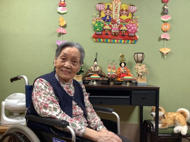 こちらのフロアでは職員さんが家からお雛様を持ってきて飾っています。成人した娘さんのお雛様だったようです♪